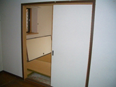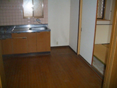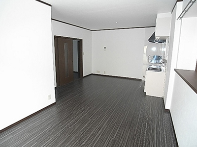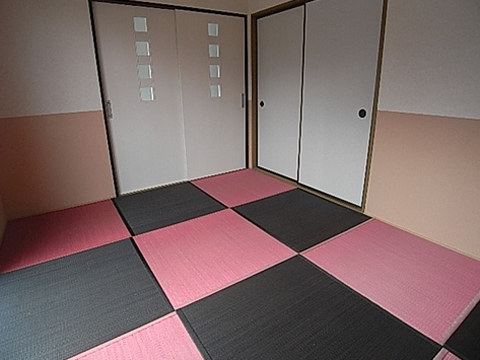 3DKから2LDKに間取りを変えたリノベーションです。 今までは、DKが真ん中にあったため太陽の光が入らず暗いイメージだったのに、和室を壊してリビングにすることで、広々とした空間になり、更に明るくなりました。 リビングのフローリングの色の基調に合わせて、和室は黒と赤のカラー畳を入れています。